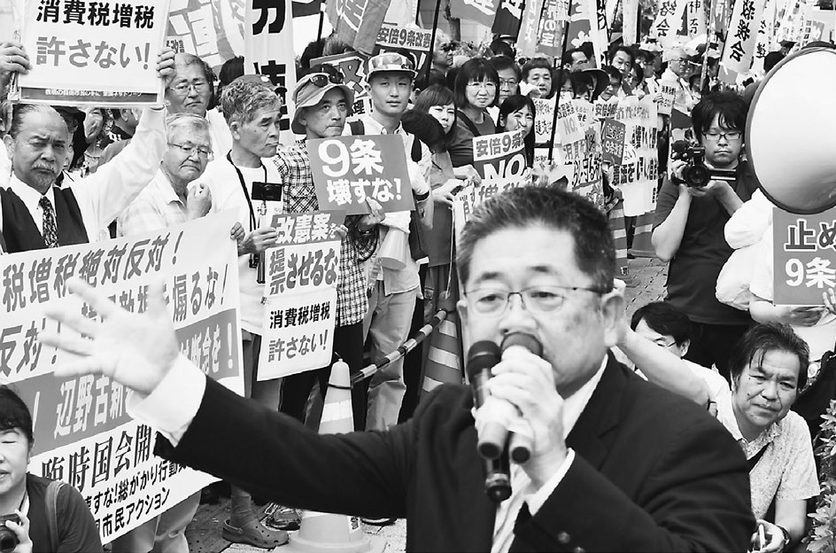 立憲民主党の水岡俊一参院議員は、安保法制の強行採決を忘れていないと述べ、「一刻も早く退陣に追い込むために頑張りたい」と表明。安倍政権に対して「野党は共闘で、力あわせてたたかっていく」と述べました。