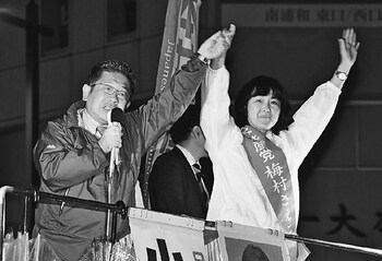 南浦和駅前(さいたま市)では、小沢一郎氏を応援している山梨アイ子さんが、梅村候補を知って共産党を見直したと述べ、「比例区では共産党と書いてほしい」と熱烈にエール。二見伸明元公明党副委員長が応援に駆け付け、「安倍政権とたたかうかなめの共産党。何十年もの間にたまった自公政権の毒素を取り除いてほしい」と期待を寄せました。社民党15区の今井宏行議長が「何としても梅村さんを国会へ」と力強く呼びかけました。