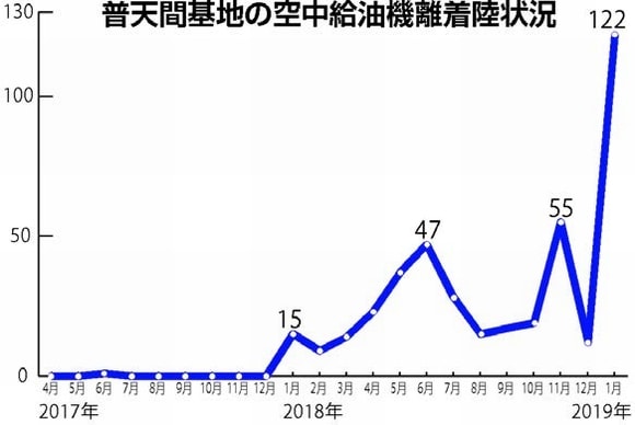 さらに、先ほど午前中、総理は空中給油機は移しましたと明言しました。しかし、二〇一四年に普天間から岩国に移転したはずの空中給油機の離発着も増加しています。