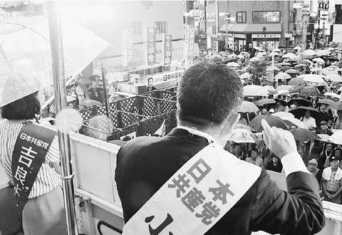 日本共産党の小池晃書記局長は14日、東京・吉祥寺、八王子両駅前で、参院選での野党共闘勝利、比例で共産党躍進、大激戦の東京選挙区(改選数6)で2期目をめざす吉良よし子候補の必勝を訴えました。雨のなか熱心に聞き入った聴衆は、「くらしに希望を」の党の提案に大きな拍手と声援を送りました。…続きを読む 参議院選挙2019政治