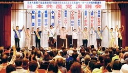 赤旗2017年5月25日付 (写真)演説会参加者の声援にこたえる小池 書記局長(中央左)、城間那覇市長(同右)、 松岡衆院比例予定候補と7人の那覇市議選 予定候補者=23日、那覇市 日本共産党の小池晃書記局長は23日、……続きを読む 地方政治