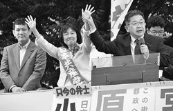 赤旗2017年4月19日付 日本共産党の小池晃書記局長は18日、東京都文京区の地下鉄・茗荷谷(みょうがだに)駅前で街頭演説し、東京都議選(6月23日告示・7月2日投票)と次期総選挙での勝利・躍進を訴えました。 小池氏……続きを読む 地方政治東京都政