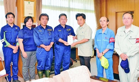 赤旗2018年7月25日付 (写真)片岡聡一総社市長(右から3人 目)に義援金の目録を手渡す小池晃書記 局長(その左)=24日、岡山県総社市 (写真)伊東香織市長(左から4人目)に 義援金の目録を手渡す小池晃書記局長(そ……続きを読む 2018年7月豪雨災害